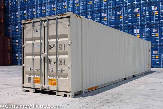 - The 45ft High Cube One Trip Container for sale is 9’6″ tall, versus the 8/6″ height of the standard ISO container. The additional post you see on these units is at the 40ft mark, so they can be stacked with 40ft containers. The additional support makes these units a favorite for our container structure and housing clients.