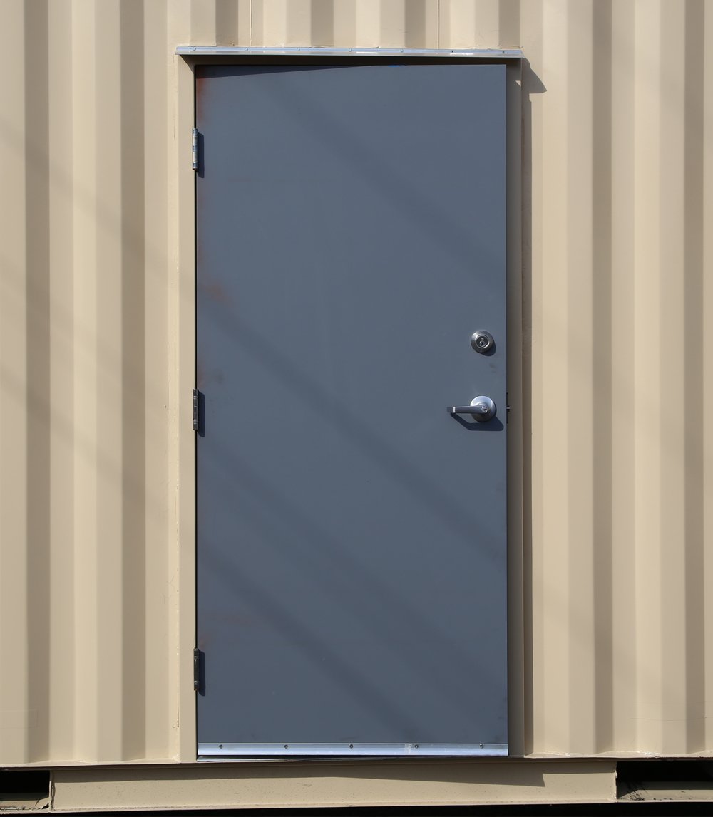 Personnel doors or “man doors’ come both in a lightweight version as well as a heavy-steel version. The average width is 36″ but wider or narrower doors can be custom ordered. Doors can be installed anywhere on your shipping container and add a level of convenience and usability otherwise not found with a storage container.All doors come with knobs that lock as well as a deadbolt unless otherwise specified, and can open in-swing or out-swing, left to right or right to left Lock boxes can be installed on a heavy steel man door for additional security.