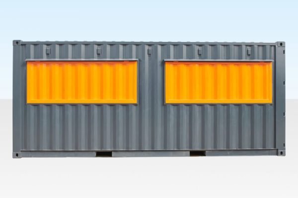 This container cafe is finished in RAL7016 (Grey) with hatches in RAL2004 (Orange). However, we can respray to any standard RAL colour (see options)